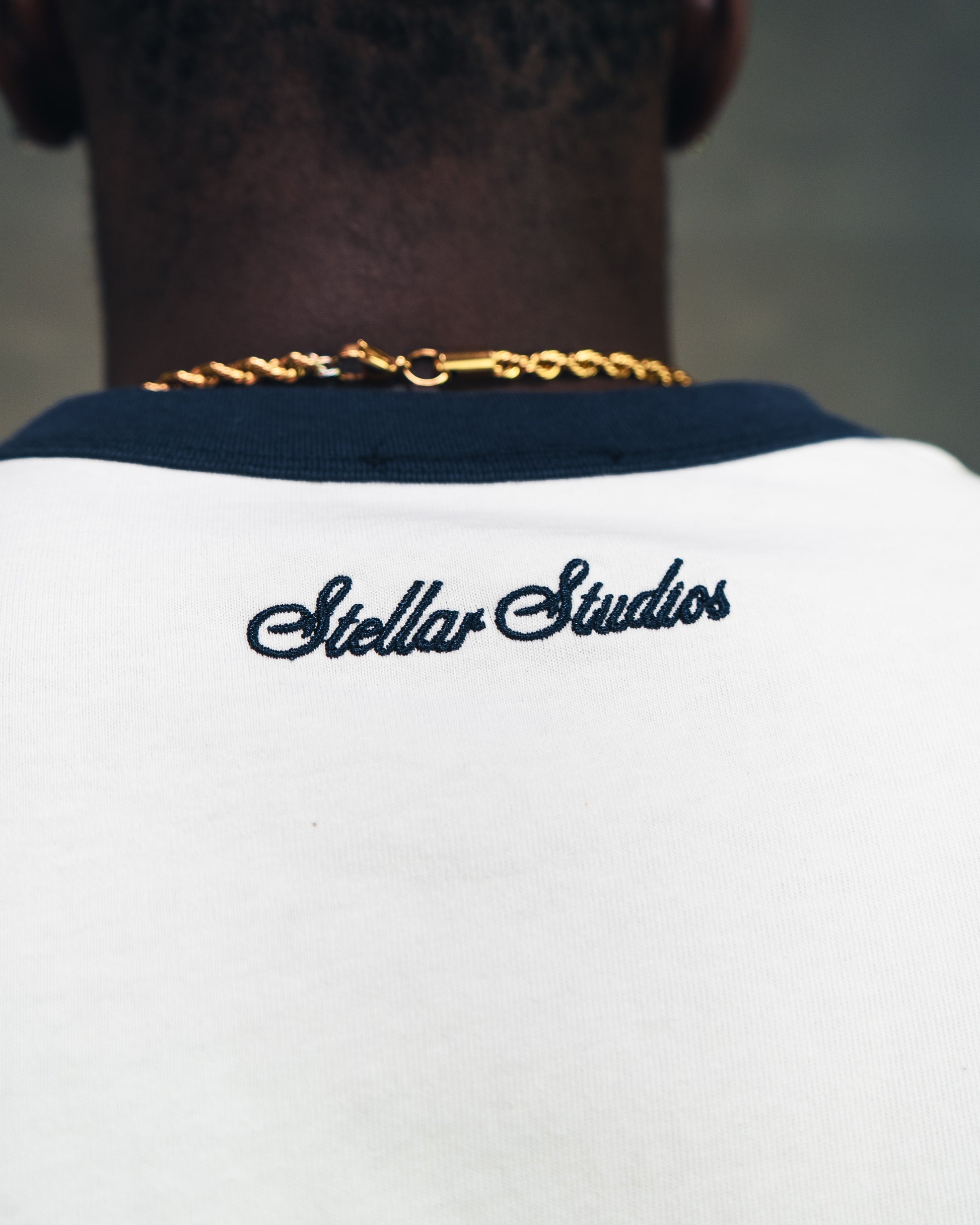 A clean white tee with blue contrast details and a subtle embroidered logo at the neck. Designed with a modern fit and a soft yet structured feel, made from 100% cotton.